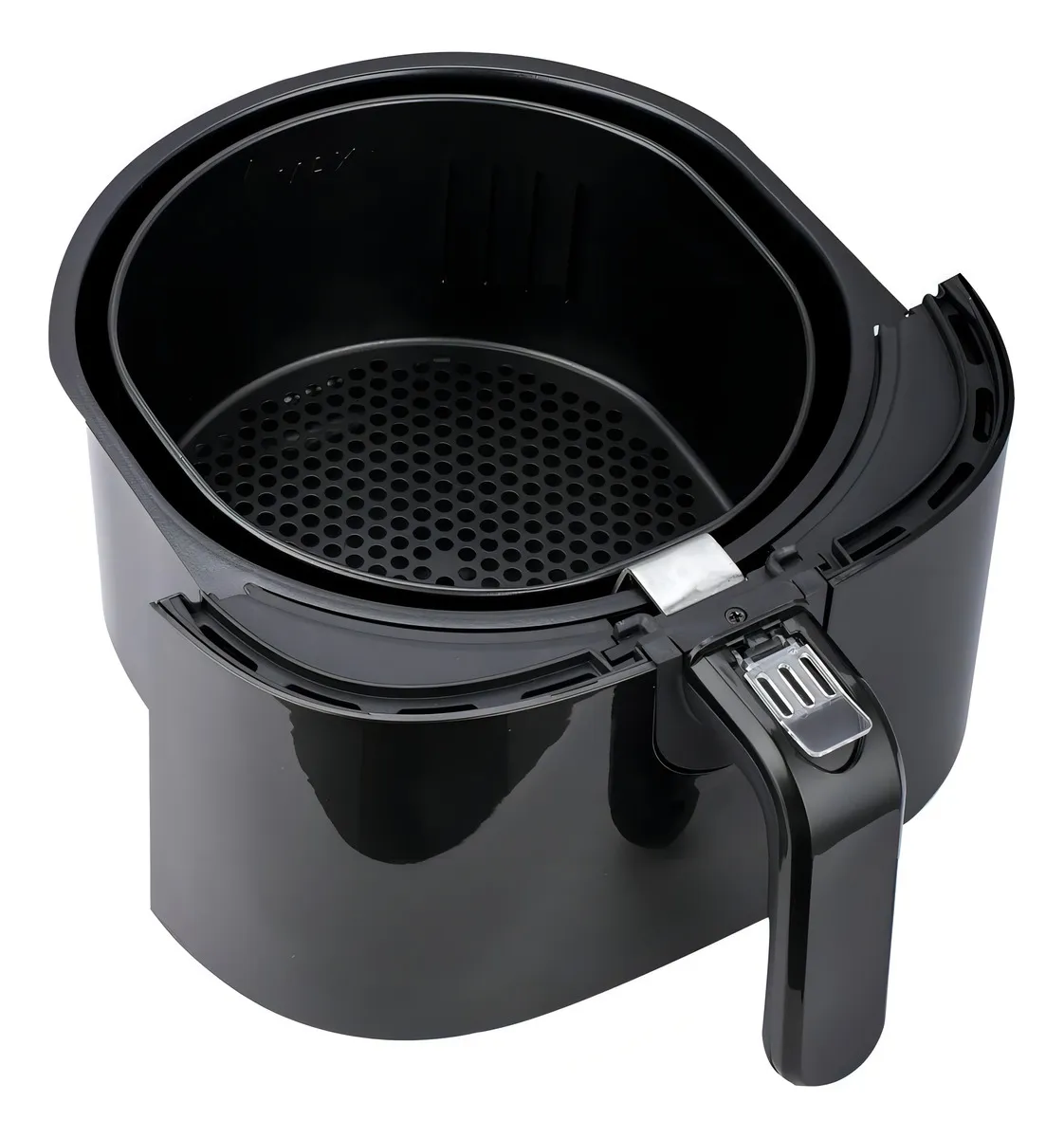 Su control de temperatura regulable entre 140 °C y 200 °C se adapta a distintos tipos de alimentos, desde papas fritas hasta carnes y snacks. Incluye un timer de 30 minutos para mayor comodidad y un canasto removible con cuba antiadherente que facilita la limpieza después de cada uso.