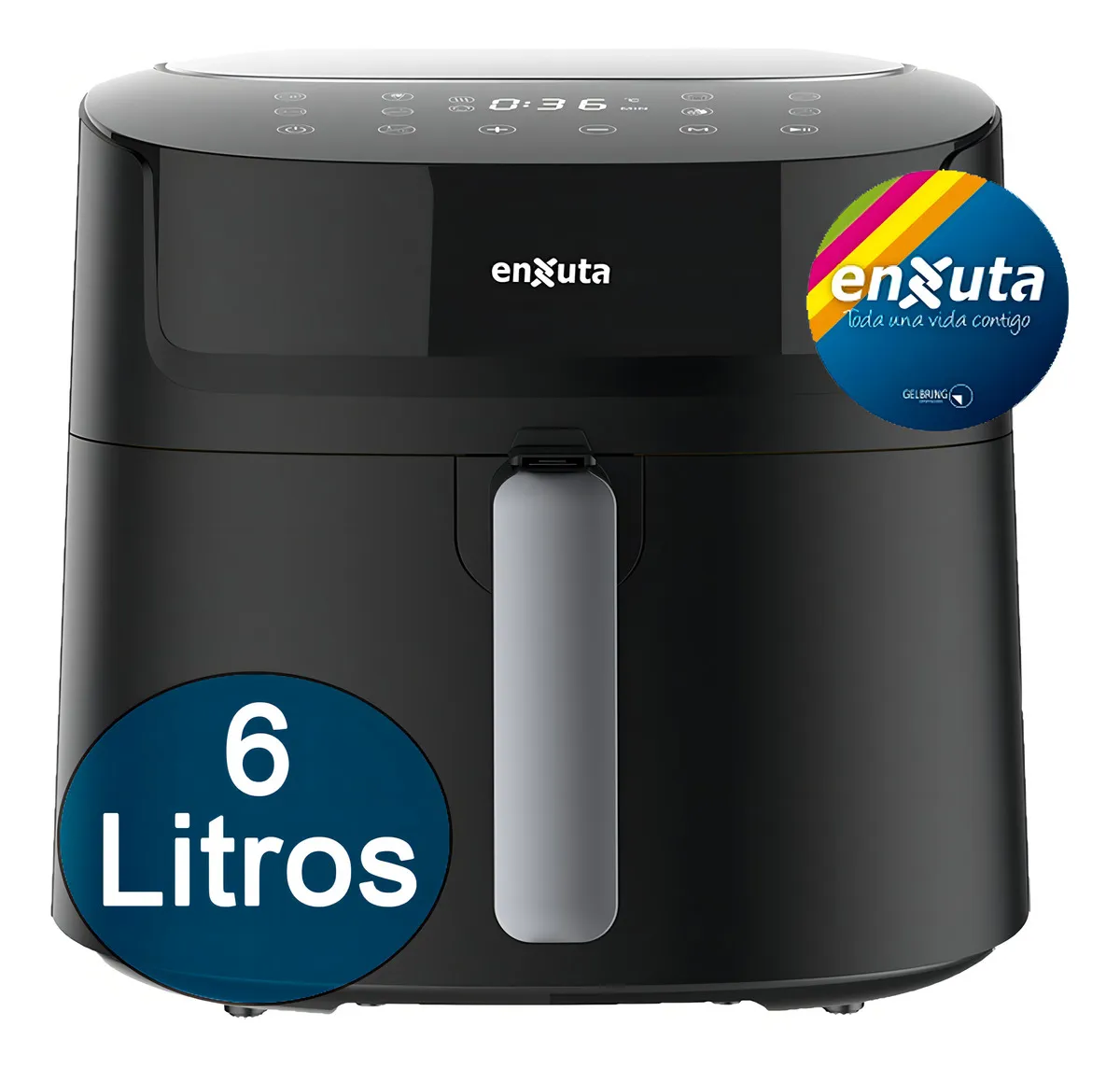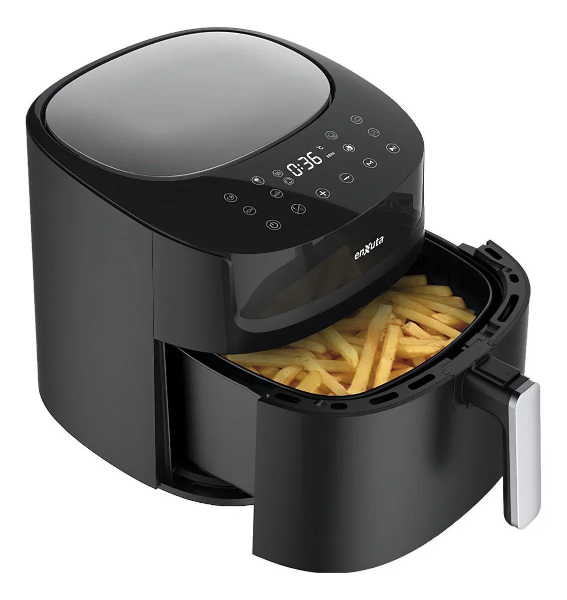 La freidora sin aceite Enxuta Touch SDAENXFSA1116 ofrece una forma práctica y saludable de cocinar, permitiendo freír y asar alimentos con muy poco o ningún aceite. Su capacidad de 6 litros la hace adecuada para porciones familiares, mientras que su potencia de 1.8 kW asegura un calentamiento rápido y uniforme.