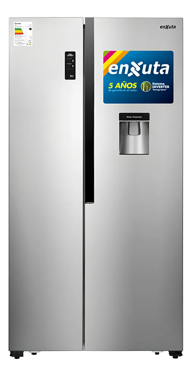 La heladera Enxuta RENX16520I ofrece capacidad, eficiencia y comodidad en un diseño Side by Side ideal para familias. Su sistema Inverter asegura un funcionamiento estable, menor consumo y mejor conservación de alimentos, alcanzando eficiencia energética A.